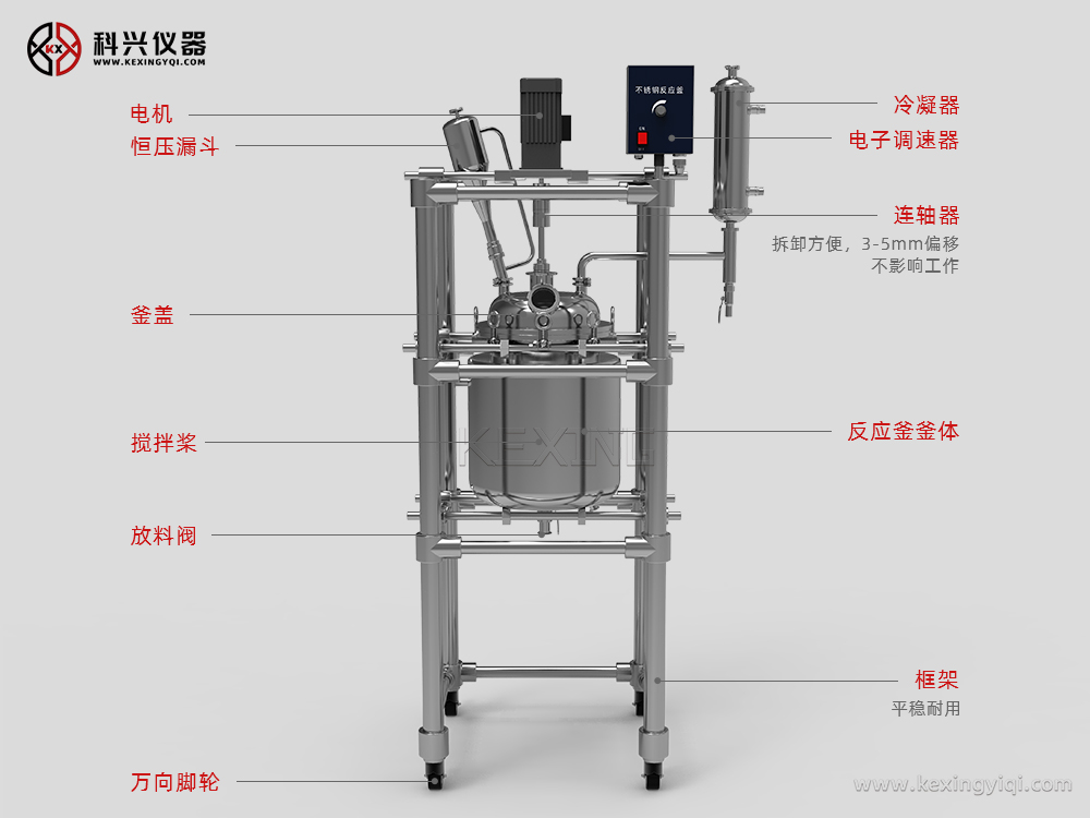 雙層不銹鋼反應釜是常用的生化儀器,廣泛地被現代精細化工、生物制藥、科研實驗等行業所選用,可在恒速、恒力、恒溫的條件下做濃縮、蒸餾、回流、分離、提純反應,是教學、實驗、中試、生產的理想儀器設備。 通過雙層反應釜夾層,注入恒溫的(高溫或低溫)熱溶液或冷卻液,對反應釜內的物料進行恒溫加熱或制冷,并且可以提供攪拌。物料在反應釜內進行反應,并能控制反應溶液的蒸發與回流,反應完畢,物料可從釜底的出料口放出,操作方便。是現代化學小樣、石油化工、中樣實驗、生物制藥及新材料合成的理想設備。